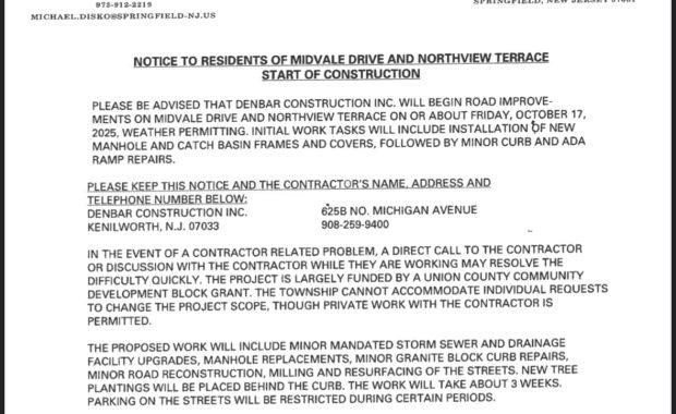 NOTICE TO RESIDENTS OF MIDVALE DRIVE AND NORTHVIEW TERRACE START OF CONSTRUCTION