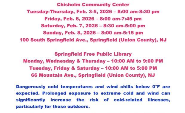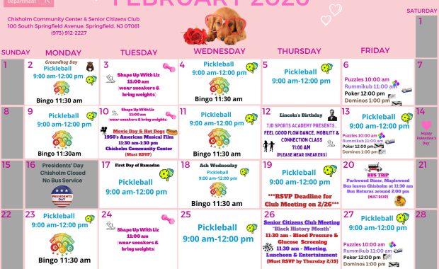 February 2026 Calendar for 55+ Community The Springfield Recreation Department’s February 2026 calendar for the 55+ community includes: a variety of games such as poker, dominos, rummikub, and puzzles; computer lab; indoor open-play pickleball (free annual registration required); “Shape Up with Liz” weekly exercise classes (free annual registration required); fitness room open on weekdays from 9:00 am-8:00 pm (free annual registration required); […]