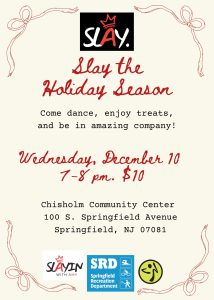 Zumba with Amy Lauren is holding a Holiday Party for adults this Wednesday, December 10, 2025, from 7:00-8:00 pm, at the Chisholm Community Center (2nd floor fitness studio), in partnership with the Springfield Recreation Department! The cost is $10 per person. Join us for dancing, treats, great company, and fun! Questions? Contact Amy Lauren at slayinwithamy@gmail.com or on Instagram at www.instagram.com/slayinwithamy